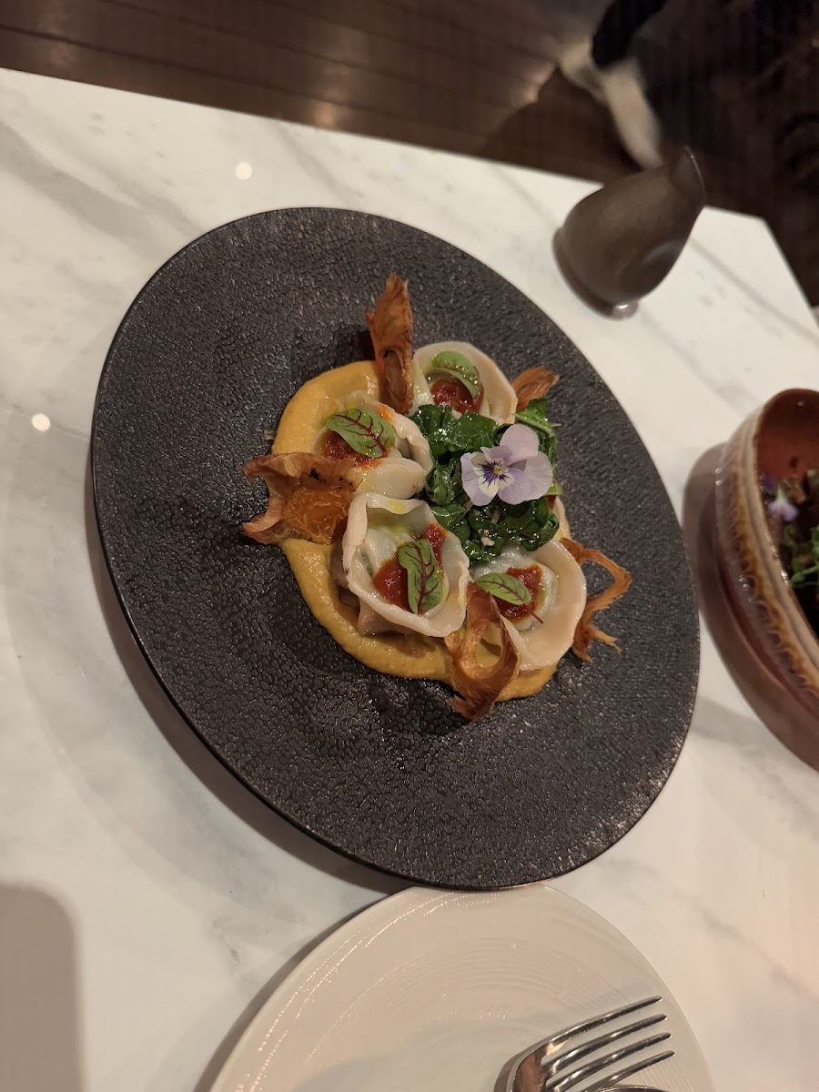 Beautiful new restaurant in Seminyak. Seven adults and one child dining. We ordered a variety of entree main and desert and also cocktails all round.The hummus and bread was absolutely divine. Lamb tagliatelle. Amazing. Mushroom tortellini very good. Chocolate desert also lovely. The only reason for the four stars is that the beef or sold out and the chicken was not available until 9 pm. Absolutely beautiful service and gorgeous people. Downstairs very picturesque however we ate upstairs and the terrace area was also very lovely. Pricing is appropriate. I have no doubt that with a little more experience, this restaurant will be a definite 5 stars.
