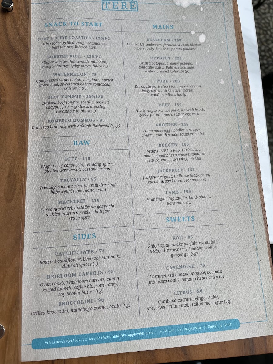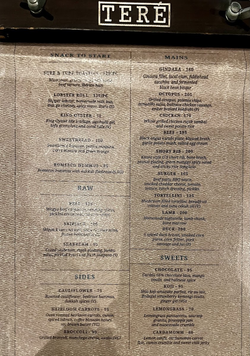 The menu at Tere Seminyak presents a delightful array of dishes that blend exquisite flavors and artful presentation. Signature offerings like the grilled octopus, succulent gindara fish, and tender Keluak beef cheek are receiving high praise. The cocktails and mocktails, including the refreshing shrub beer, pair perfectly with the meals, ensuring a holistic dining experience. Diverse dessert options, such as the innovative Koji parfait, leave a lasting impression. With room for a few minor adjustments, Tere Seminyak is on its way to becoming a beloved destination in Seminyak.